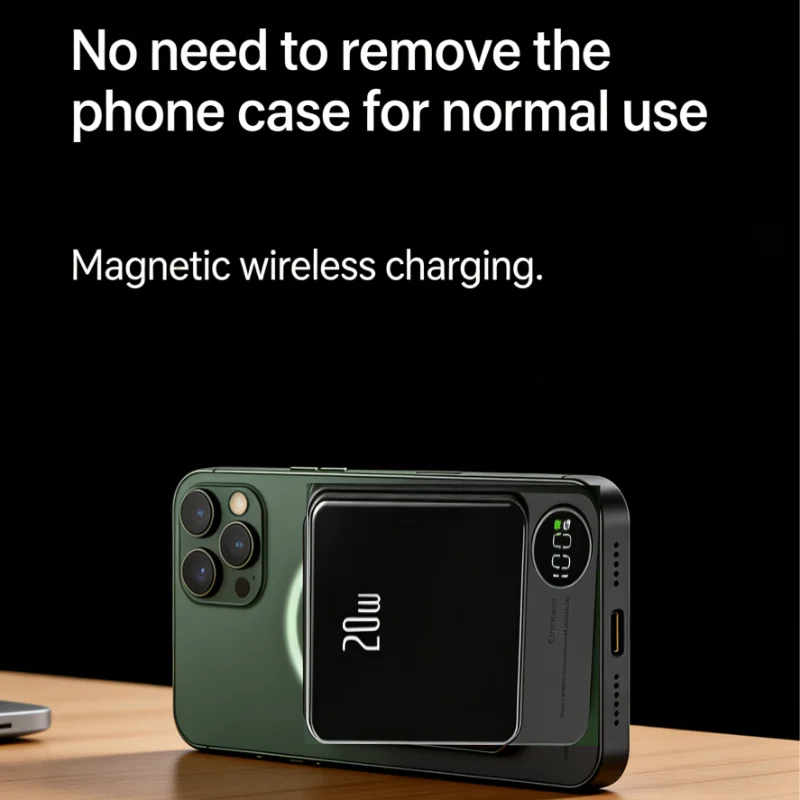 20000mAh Magnetic Wireless Power Bank with Digital Display Ultra-Slim Portable Charger for PD 30W Fast Charging Compact Travel