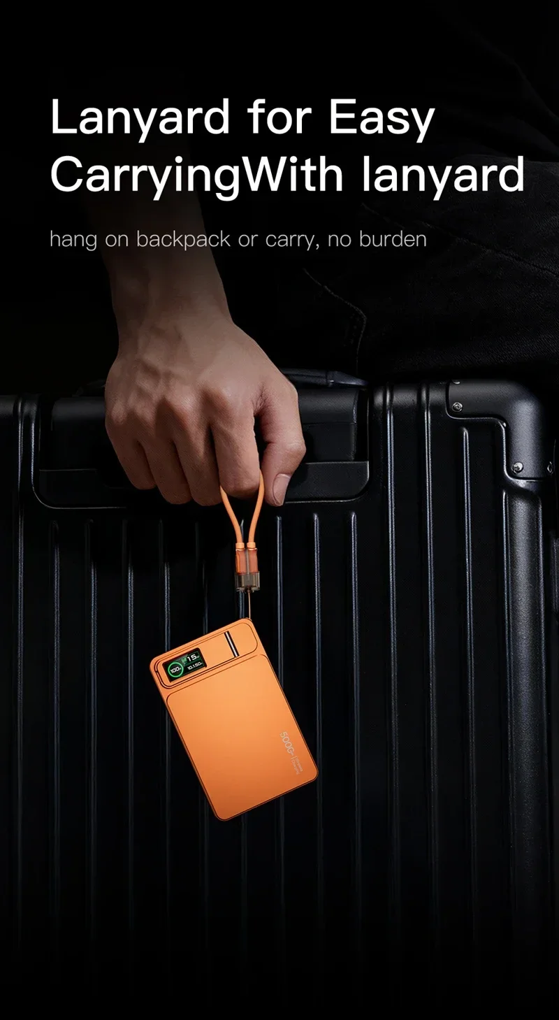 The body is ultra-thin and lightweight, easily fitting into jeans pockets or small carry bags. It comes with a lanyard, so you can hang it on your bag to prevent loss when going out. It also meets airline carry-on standards, so no need to check it in when flying—making business trips and travels more hassle-free.